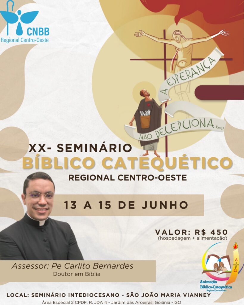 No fim de semana, dias 13 a 15 de junho, acontece no Seminário Interdiocesano São João Maria Vianney, em Goiânia, o XX Seminário Bíblico-Catequético do Regional Centro-Oeste da CNBB, cujo tema é “A esperança não decepciona” (Rm 5,5) o mesmo do Mês da Bíblia 2025. O evento terá assessoria do Pe. Carlito Bernardes, doutor em […]