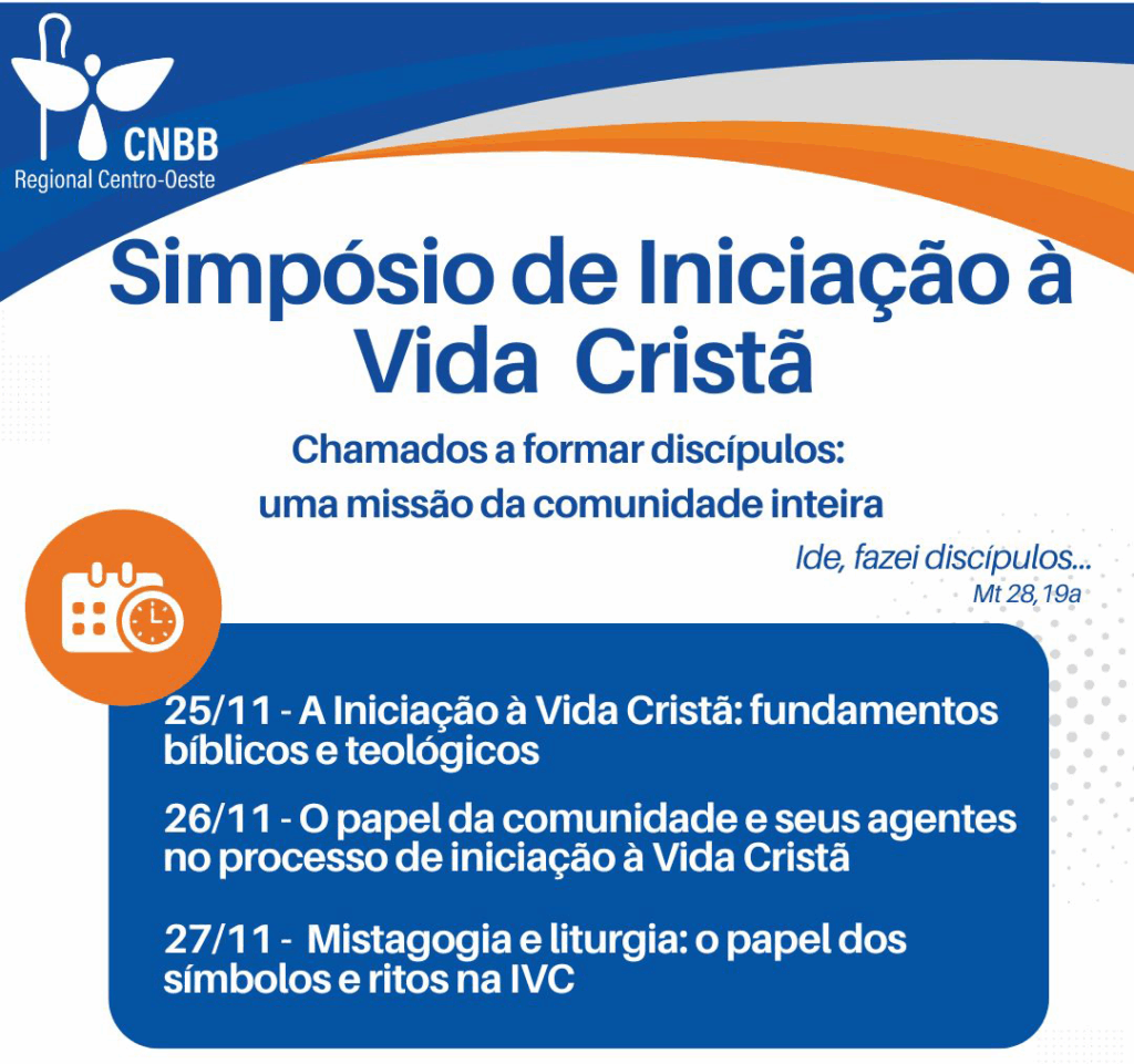 A Animação Bíblico-Catequética do Regional Centro-Oeste da CNBB realiza nos dias 25 a 27 de novembro, Simpósio de Iniciação à Vida Cristã 2025. O evento trata-se de um momento importante de formação, aprofundamento e unidade pastoral, especialmente para todos que atuam na evangelização: catequistas, ministros, liturgistas, coordenadores, agentes da pastoral batismal, pastoral familiar, juventude, equipes […]