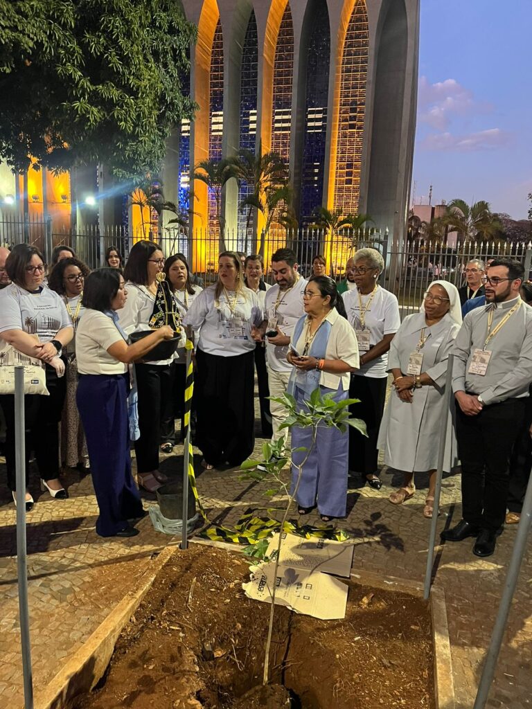 Às 18h, no espaço externo do Santuário, foi realizada a plantação simbólica de um ipê-rosa, marco dos 10 anos da Pastur no Brasil. A proposta, lida pelo padre João Carlos André, SDB, trouxe um significado profundo: assim como o ipê floresce mesmo em tempos secos, a Pastur é sinal de fé viva e esperança que brota nos caminhos da missão. O tronco firme simboliza a solidez das comunidades que acolhem e evangelizam, e sua beleza presta homenagem a cada peregrino que, vindo de diferentes cantos do país, deixou em Brasília um pouco de sua história.